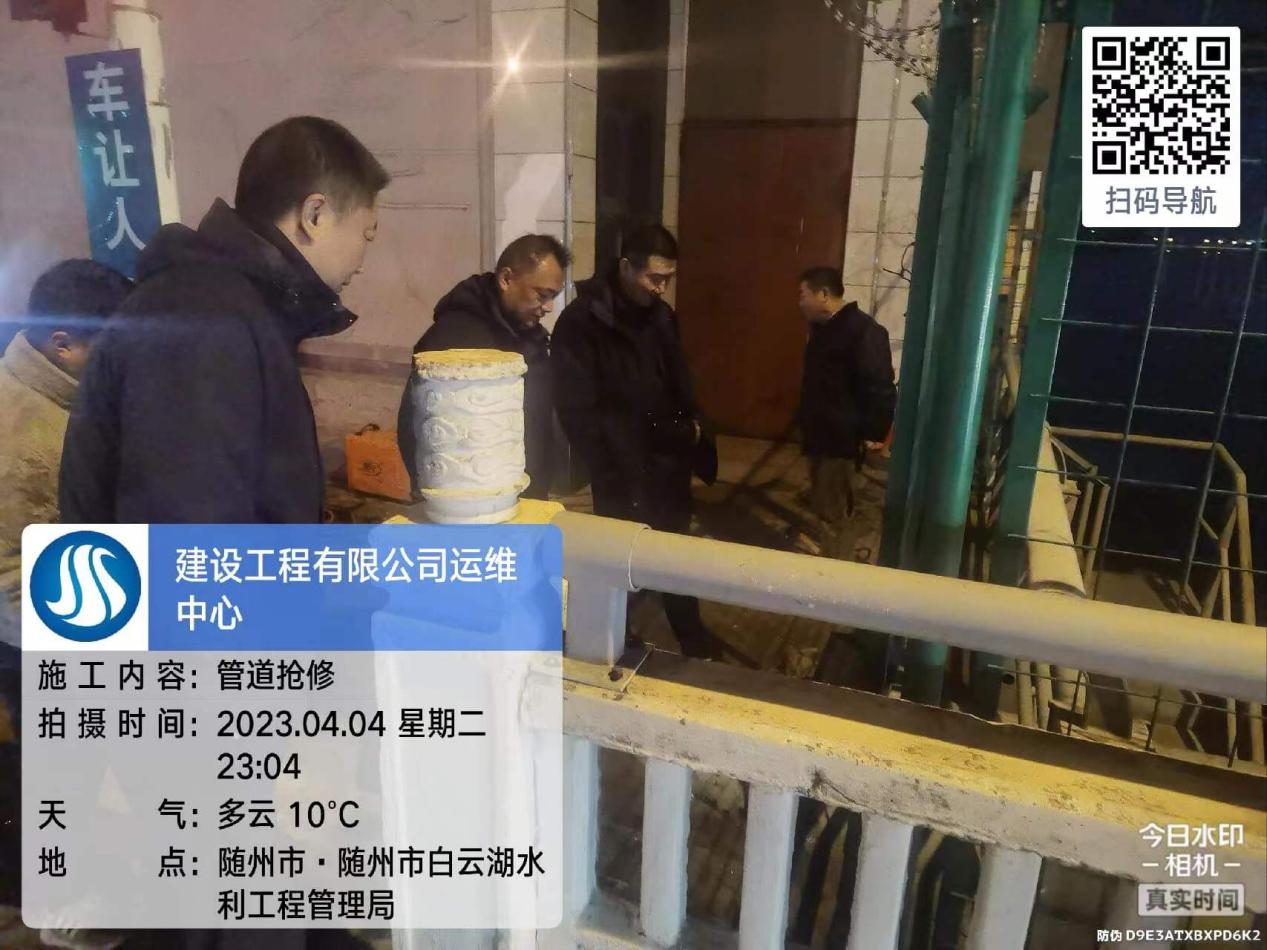 4月4日,水務(wù)集團(tuán)接到一條熱線工單,反映位于白云湖大壩舜井大橋路段處一根DN700的主供水管網(wǎng)破裂需盡快修復(fù)。盡管已是夜間,水務(wù)集團(tuán)維修人員仍火速趕至現(xiàn)場,當(dāng)即確定漏水管線影響范圍,及時(shí)關(guān)閉閥門并向受影響小區(qū)發(fā)布停水通知。