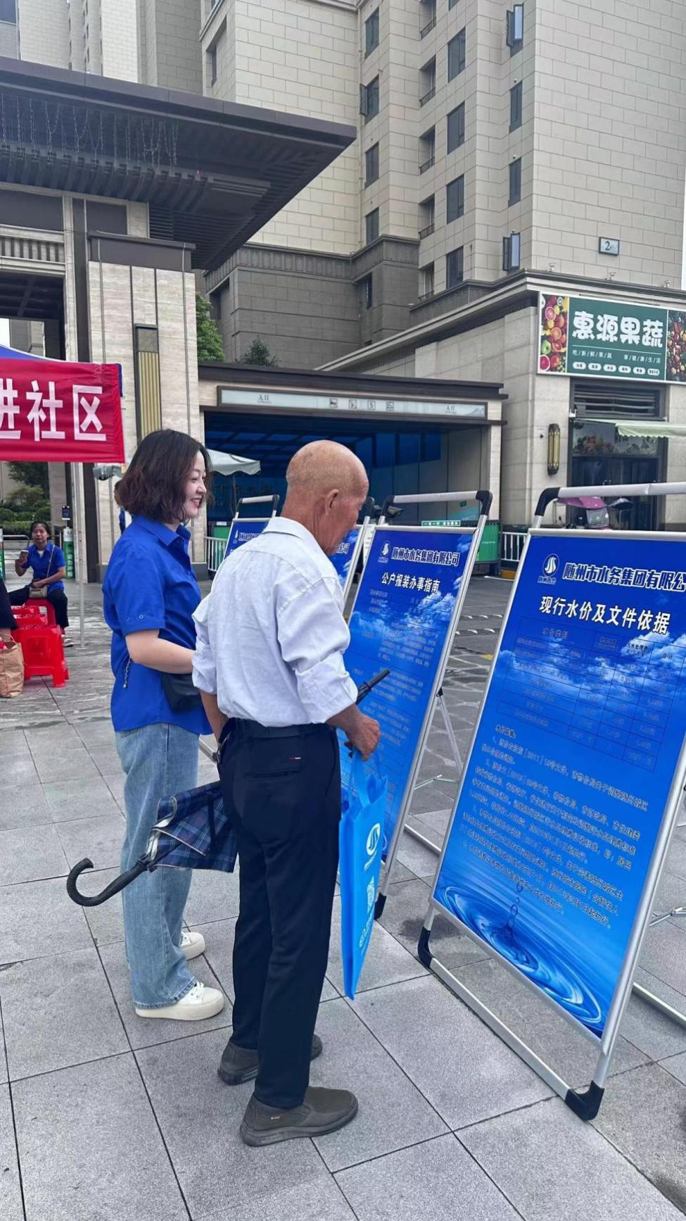 活動(dòng)現(xiàn)場(chǎng),市水務(wù)集團(tuán)志愿服務(wù)隊(duì)在小區(qū)門口廣場(chǎng)有序搭建宣傳展架、懸掛宣傳橫幅、發(fā)放供水宣傳資料,工作人員以飽滿的熱情接待每一位前來咨詢的用戶。