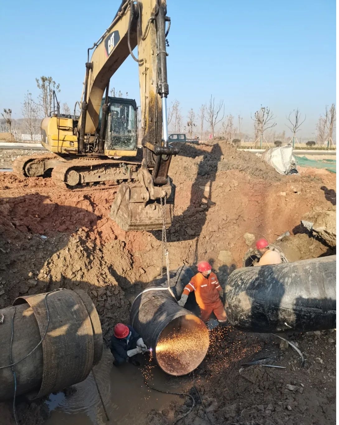 經(jīng)過24小時不間斷連續(xù)奮戰(zhàn),12月7日17時30分許,隨州城區(qū)?水河?xùn)|岸生態(tài)環(huán)境提升工程PPP項目-DN1000供水主管道遷改工程新舊管道順利連接。