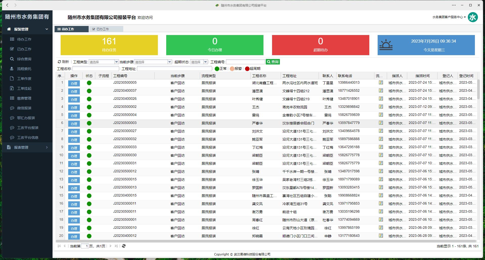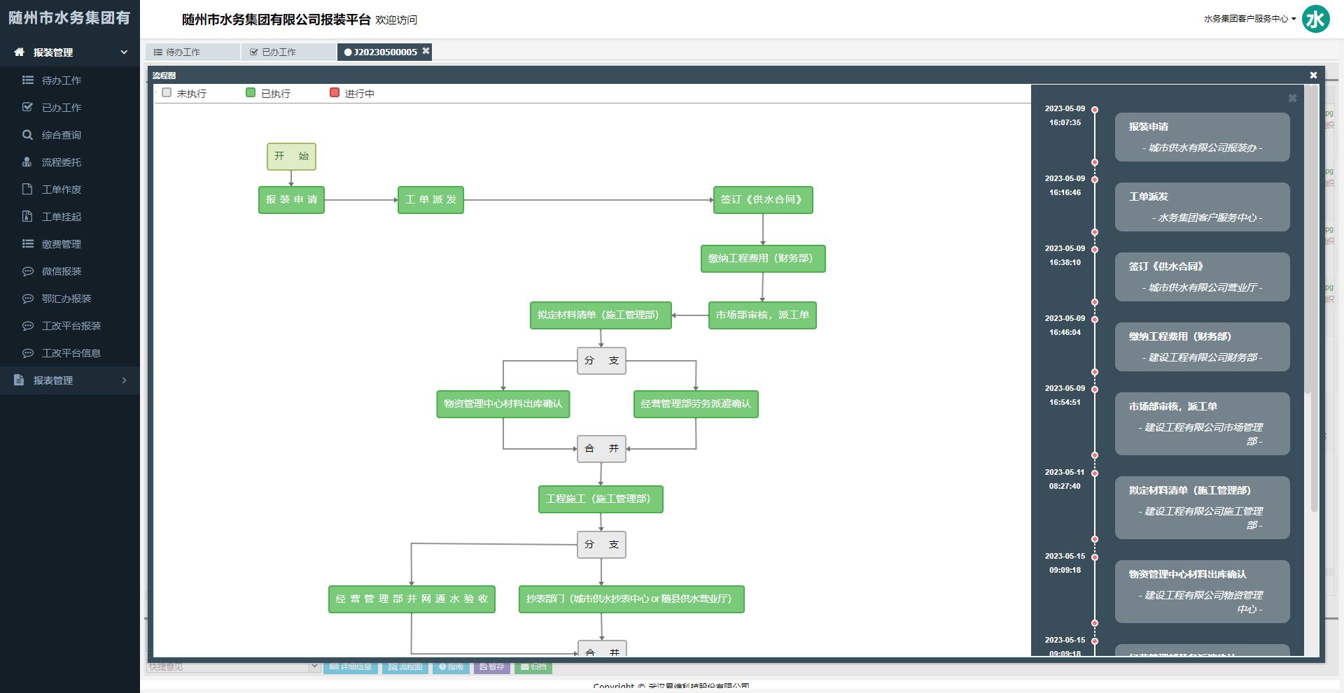 (5)報裝業(yè)務系統(tǒng)自動流轉(zhuǎn)提醒,自動記錄