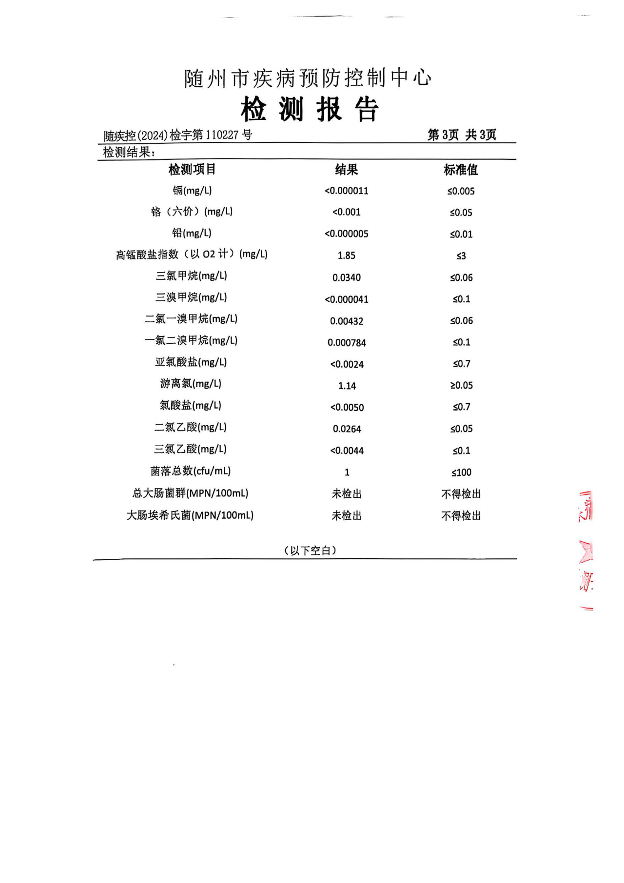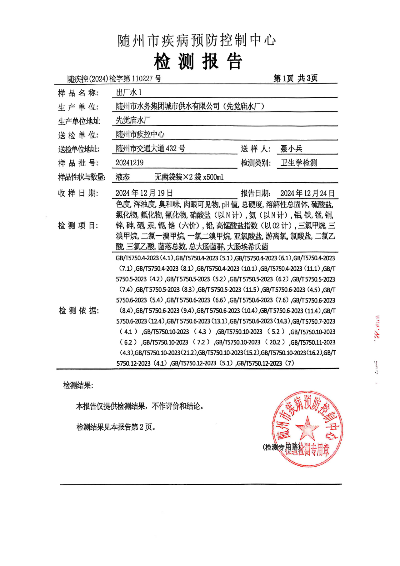 二、我公司在水質(zhì)管理上嚴(yán)格執(zhí)行兩級(jí)管理、三級(jí)檢測(cè)制度,出廠水水質(zhì)均符合國(guó)家《生活飲用水衛(wèi)生標(biāo)準(zhǔn)》GB5749-2022的要求,請(qǐng)廣大用戶放心使用。